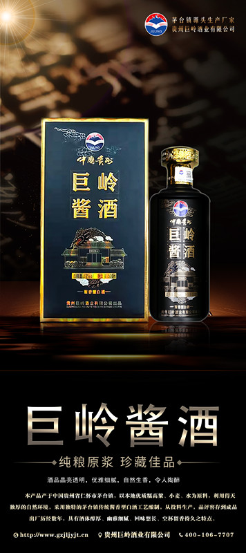 貴州巨嶺酒業(yè)有限公司,座落于聞名世界的古鎮(zhèn),國酒之鄉(xiāng)“茅臺鎮(zhèn)”。與“國酒茅臺”共享得天獨厚的氣候、土壤、水源、以及微生物群等自然資源;《巨嶺酒業(yè)》老作坊前身“巨嶺燒坊”,經(jīng)過多年的傳承,秉承先輩們代代相傳的古法釀造工藝,歷經(jīng)幾代人的延續(xù)和釀酒發(fā)展,奠定了《巨嶺酒業(yè)》發(fā)展的堅實基礎(chǔ)。 作為貴州茅臺鎮(zhèn)本土規(guī)模企業(yè),《巨嶺酒業(yè)》擁有傳統(tǒng)發(fā)酵窖池200余口,年產(chǎn)優(yōu)質(zhì)醬香白酒近2600多噸,儲酒能力12000多噸;并配有3條現(xiàn)代化包裝生產(chǎn)線;公司現(xiàn)有職工300多名,有釀酒師15人,技術(shù)人員22人,本科以上學(xué)歷管理人員12人,大專學(xué)歷工作人員78人,是茅臺古鎮(zhèn)醬酒傳承的白酒知名企業(yè)。 《巨嶺酒業(yè)》勵精圖治與精益求精的發(fā)展理念,已成長為行業(yè)認(rèn)可、社會公認(rèn)的“規(guī)模釀酒企業(yè)”,酒業(yè)協(xié)會副會長單位”和“愛心企業(yè)”。 公司現(xiàn)在擁有:《巨嶺醬酒》,《嶺臺》,《玉嶺燒坊》,《酒緣》《情滿壺》等上百個品牌產(chǎn)品,公司注重品牌發(fā)展,以《巨嶺醬酒》為品牌核心,以個性化定制和尊貴封藏為營銷模式,制定出“一核兩柱”的銷售模式?!毒迬X醬酒》作為品牌主體,做擴(kuò)展市場的排頭先鋒,全國布局,點線結(jié)合,網(wǎng)狀布局,包括《巨嶺》系列產(chǎn)品.... |
